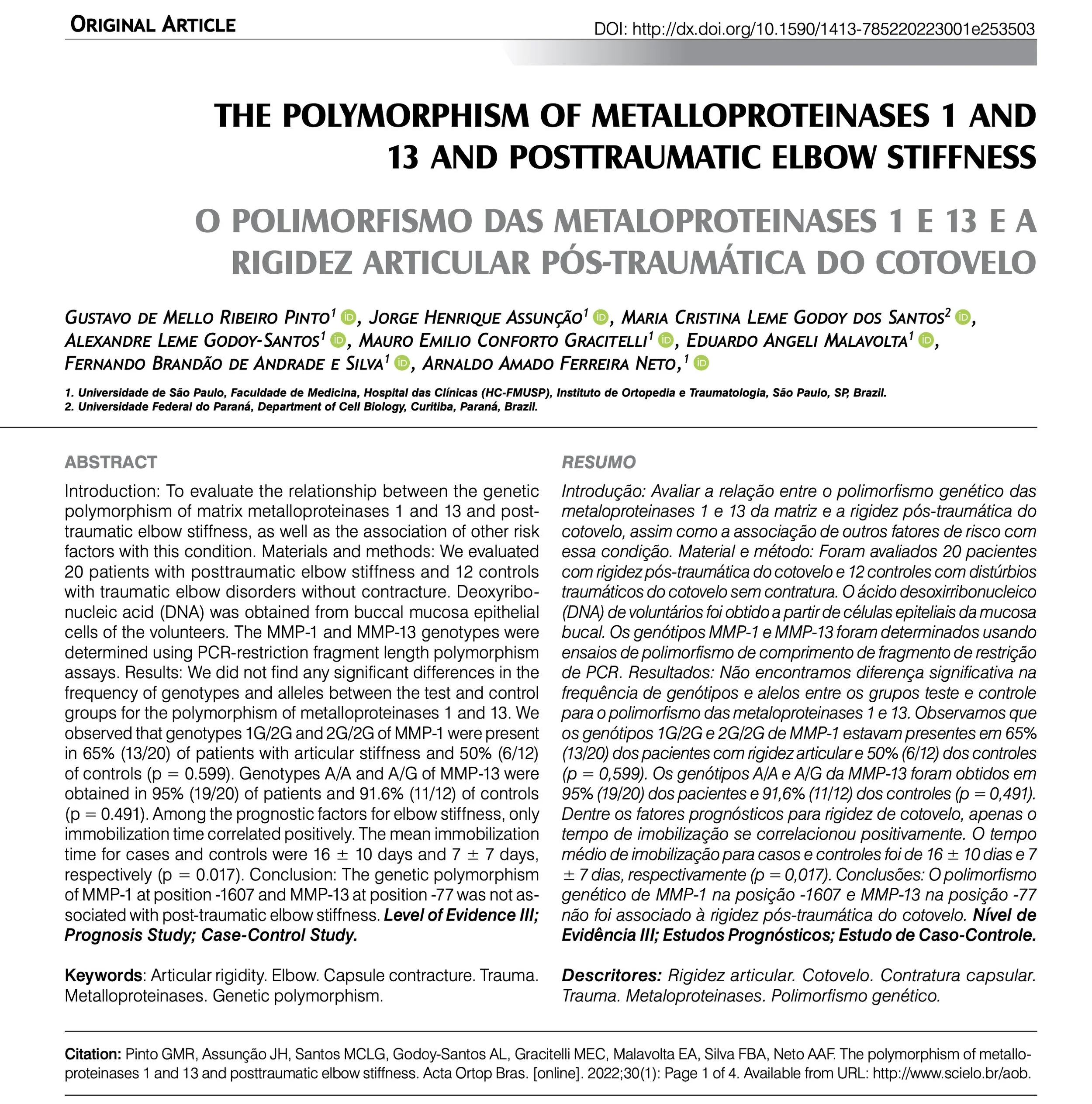 Estudo clínico, publicado na revista Acta Ortopédica Brasileira, em que avaliamos possíveis influências genéticas no desenvolvimento de rigidez pós-traumática do cotovelo.