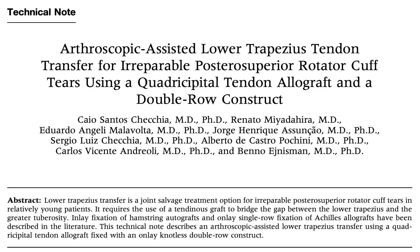 Título: Transferência do Tendão do Trapézio Inferior Assistida por Artroscopia para Lesões Irreparáveis do Manguito Rotador Posterosuperior